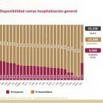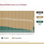 A nivel nacional, 69% de camas de hospitalización general están disponibles y 31% ocupadas. En camas con ventiladores, 74% están disponibles y 26% ocupadas.