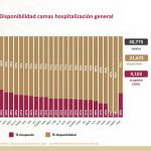 A nivel nacional, 70% de camas de hospitalización general están disponibles y 30% ocupadas. En camas con ventiladores, 76% están disponibles y 24% ocupadas.