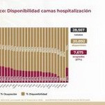 A nivel nacional, 73% de camas de hospitalización general están disponibles y 27% ocupadas. En camas con ventiladores, 77% están disponibles y 23% ocupadas.
