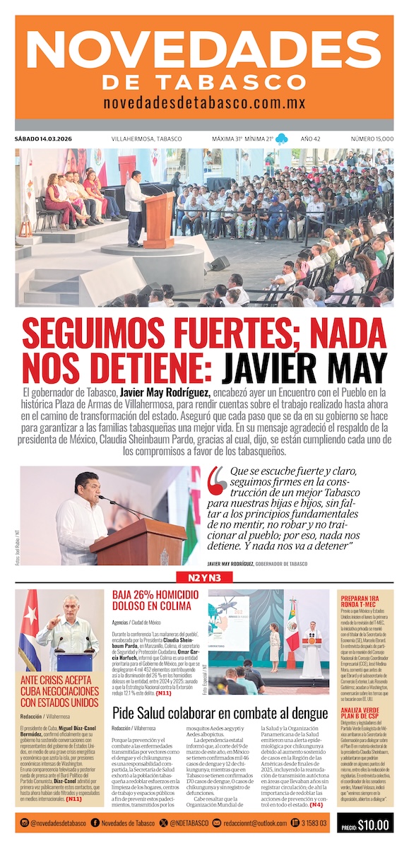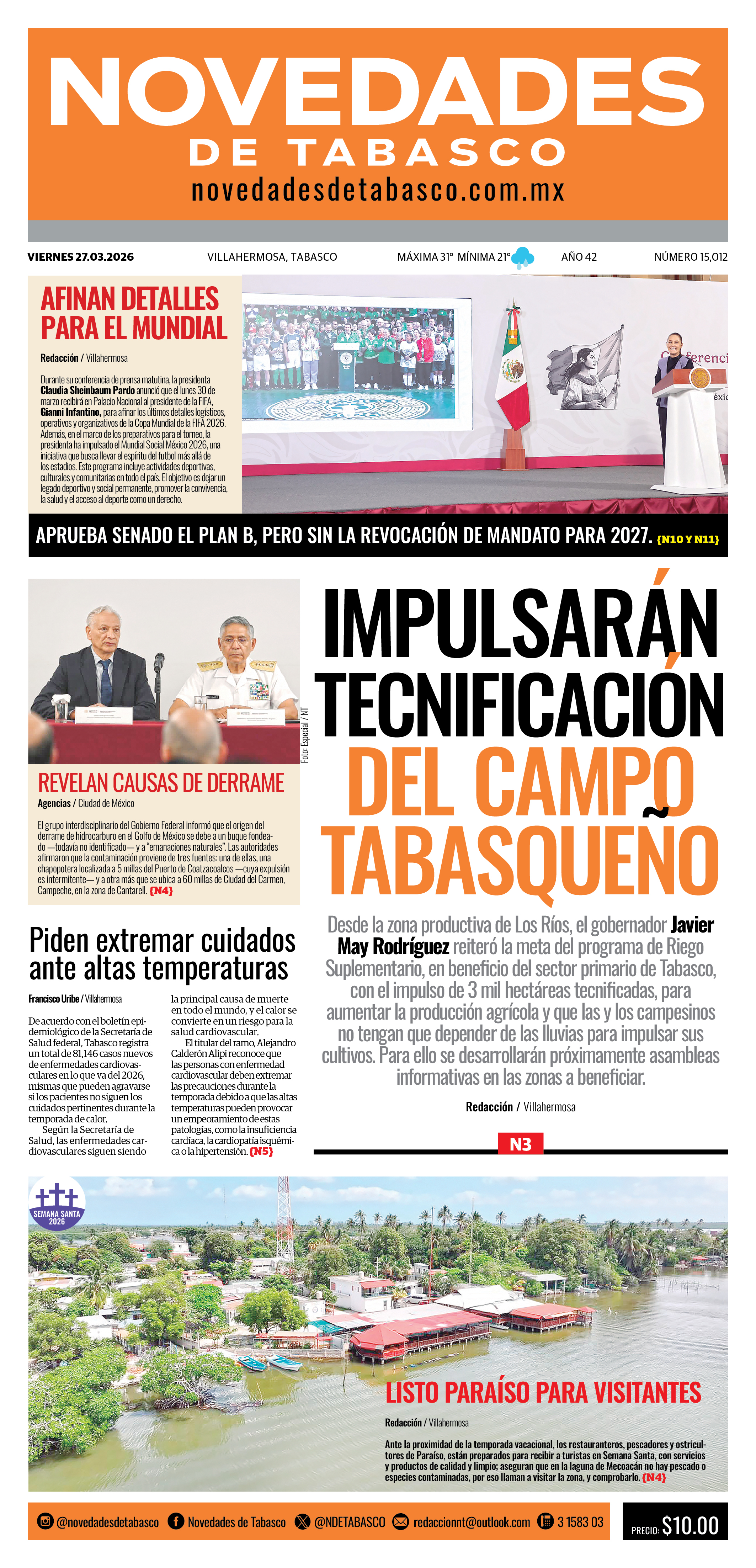 Novedades de Tabasco El diario mas fuerte de Tabasco