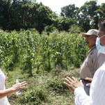 Acompañada de Director de Desarrollo José Luis Sánchez Izquierdo y de otros funcionarios conoció el aprovechamientos que productores han dado a estos programas para sembrar maíz y hortalizas.
