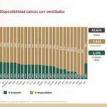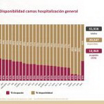 A nivel nacional, 65% de camas de hospitalización general están disponibles y 35% ocupadas. En camas con ventiladores, 70% están disponibles y 30% ocupadas.