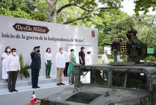 En la parada militar que tuvo una duración de alrededor de 14 minutos, participaron tres carros temáticos del Gobierno del Estado, el primero denominado “Frente al COVID”, a cargo de la Secretaría de Cultura, mismo que permitió observar detalles dirigidos a la importancia de hacer conciencia ciudadana frente a este mal y no bajar la guardia.