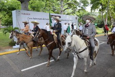 Como ya es tradicional, cerró el desfile militar la Asociación de Charros de Villahermosa, que participó con 35 jinetes, entre charros y adelitas, montados en sus respectivos caballos.