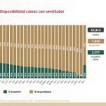 A nivel nacional, 69% de camas de hospitalización general están disponibles y 31% ocupadas. En camas con ventiladores, 75% están disponibles y 25% ocupadas.