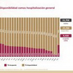 A nivel nacional, 70% de camas de hospitalización general están disponibles y 30% ocupadas. En camas con ventiladores, 75% están disponibles y 25% ocupadas.