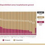 A nivel nacional, 69% de camas de hospitalización general están disponibles y 31% ocupadas. En camas con ventiladores, 75% están disponibles y 25% ocupadas.