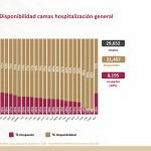 A nivel nacional, 72% de camas de hospitalización general están disponibles y 28% ocupadas. En camas con ventiladores, 75% están disponibles y 25% ocupadas.