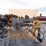 Tres vehículos que circulaban por el lugar al momento del accidente fueron alcanzados por las llamas e incluso uno de ellos fue aplastado por una de las pesadas unidades.