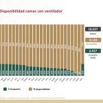 A nivel nacional, 72% de camas de hospitalización general están disponibles y 28% ocupadas. En camas con ventiladores, 77% están disponibles y 23% ocupadas.