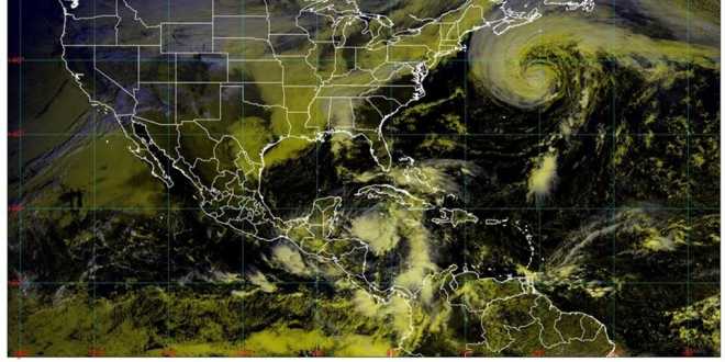 En contraste, se pronostican temperaturas máximas de 35 a 40 grados Celsius en Michoacán, Nayarit, Sinaloa y Sonora. A las 07:00 horas, tiempo del centro de México, la zona de baja presión en el Mar Caribe incrementó a 90 por ciento la probabilidad de desarrollo ciclónico. Su centro se localizó aproximadamente a 530 kilómetros (km) al este-sureste de las costas de Cancún, Quintana Roo, y se desplaza hacia el noroeste. Pronóstico por regiones Para el Valle de México se prevé cielo mayormente despejado y viento de componente norte de 10 a 20 km/h, con rachas de 35 km/h.