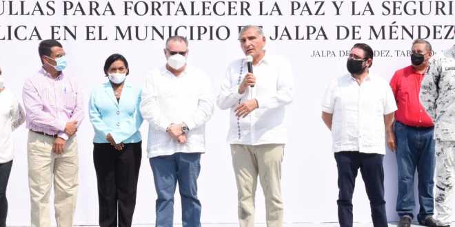 Acompañado del alcalde Jesús Selván García, así como de expresidentes municipales, el jefe del Ejecutivo reconoció el trabajo y coordinación de los tres niveles de gobierno para que Jalpa de Méndez haya dejado los primeros lugares de incidencia delictiva y hoy goce de una mejor seguridad pública, al ubicarse en el lugar número 8 del ranking estatal en materia de inseguridad.