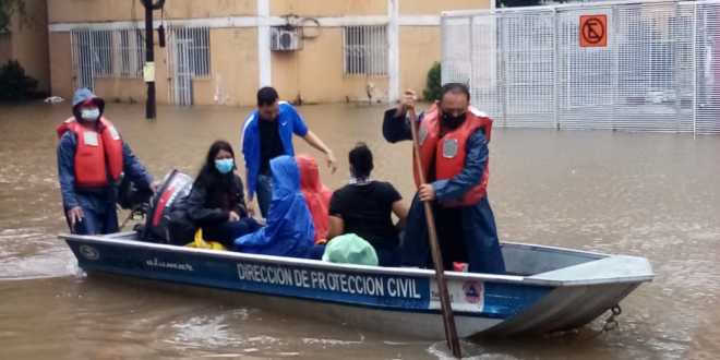 Además, deslizamientos de laderas en zonas serranas, especialmente en Tacotalpa; vados en la carretera Villahermosa a Teapa y sus caminos secundarios; encharcamientos en La Chontalpa y Centro; y desprendimiento de láminas, caída de ramas, árboles, postes de luz y espectaculares, principalmente en la zona costera y subregiones Chontalpa y Centro.