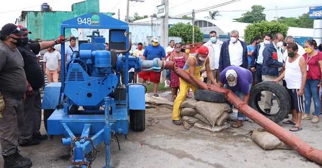 El gobernador Adán Augusto López Hernández supervisó la instalación de bombas de gran capacidad en tres puntos de Villahermosa considerados como “críticos” por el nivel que alcanzó la inundación provocada por las lluvias históricas que dejó a su paso el Frente Frío número 9, y garantizó que ningún sector poblacional afectado se quedará sin atención.