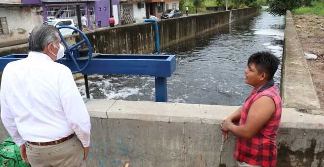 El jefe del Ejecutivo evaluó este martes, el funcionamiento de las bombas de extracción instaladas en la colonia Casa Blanca segunda sección y también se trasladó al fraccionamiento Lagunas, además de las acciones emprendidas para reforzar el bordo que protege al fraccionamiento El Encanto de la crecida de aguas lagunares.