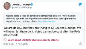 Trump acusa de fraude electoral en un tweet y se lo eliminan