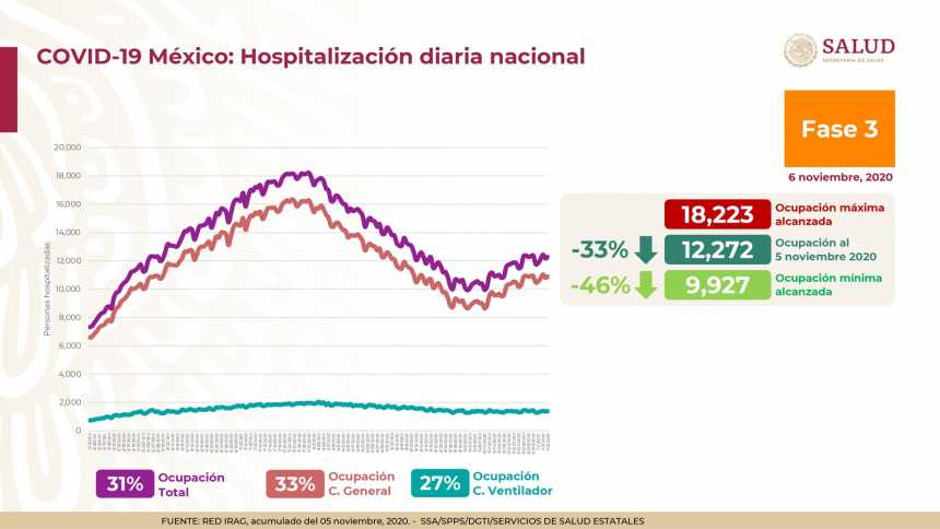 A nivel nacional, el 33% de camas de hospitalización general y el 27% de camas con ventiladores están ocupadas.