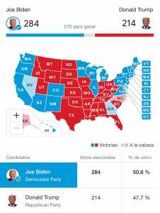 Esta mañana Biden logró sumar los 20 puntos de Pensilvania con lo que sumó 273 contra los 214 de Trump.