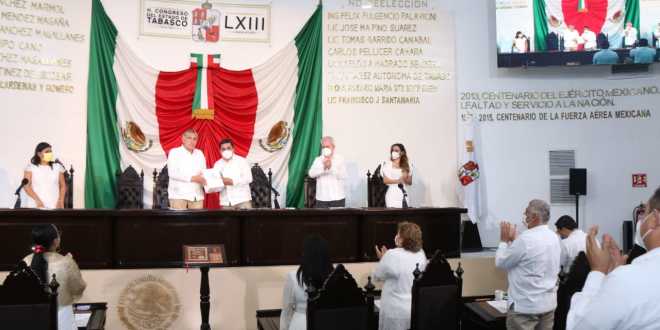 En cumplimiento a lo que mandata la Constitución, el gobernador Adán Augusto López Hernández entregó por escrito su Segundo Informe de Gobierno al Congreso del Estado, en el marco de un acto republicano en el que su mensaje, así como los posicionamientos de las fracciones parlamentarias fueron pospuestos hasta el martes 17 de noviembre, debido a la emergencia que vive Tabasco a causa de las inundaciones.