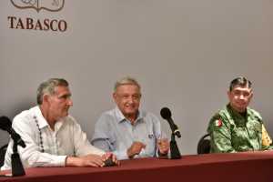 “El pueblo de Tabasco cuenta con el gobierno de la República, no van a faltar recursos para apoyar con enseres para apoyar con vivienda, apoyar a productores y que haya bienestar, eso lo podemos atender, lo podemos resolver.”