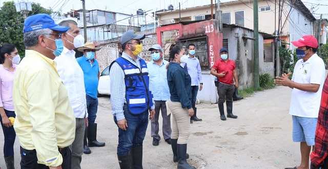 Manifestó que elementos del Ejército Mexicano y la Guardia Nacional colocan un muro de costales para evitar que el agua siga pasando, pues ya se tiene un nivel de 60 centímetros.