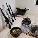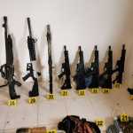 Derivado del cateo se detuvo a dos sujetos a quienes se les aseguraron 10 armas largas, dos armas cortas, 51 cajas con cartuchos útiles, 27 cargadores y dos básculas grameras, además de teléfonos celulares y equipo de cómputo.