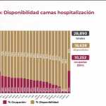 A nivel nacional, 65% de camas de hospitalización general están disponibles y 35% ocupadas. En camas con ventiladores, 72% están disponibles y 28% ocupadas.
