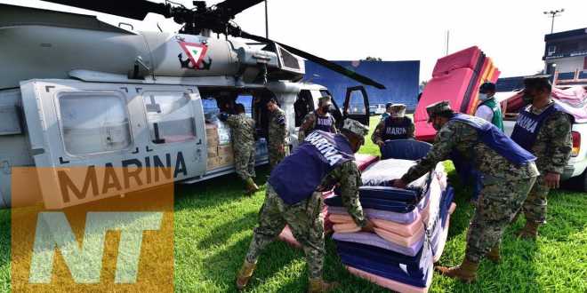 Ayer jueves la Marina invitó a medios de comunicación locales a realizar un recorrido en helicóptero y observar la operación de los puentes aéreos, así como lo que se hace en tierra.