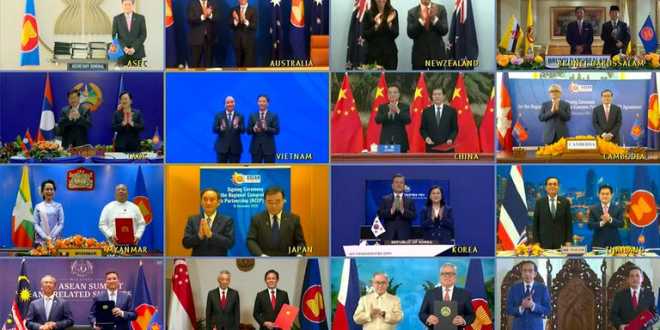 En una cumbre realizada de forma virtual por la pandemia, 15 países de la región Asia-Pacífico acordaron este domingo la creación de la Asociación Económica Integral Regional (RCEP), el mayor tratado de libre comercio del mundo, con China a la cabeza.