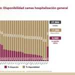 A nivel nacional, 64% de camas de hospitalización general están disponibles y 36% ocupadas. En camas con ventiladores, 72% están disponibles y 28% ocupadas.