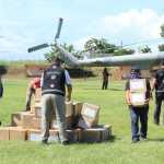 Este martes, como parte del puente aéreo de ayuda humanitaria que mantiene la Marina y la CNPC en conjunto con autoridades estatales y municipales, fueron entregadas las primeras 200 despensas, del Fondo Nacional para Desastres Naturales (Fonden), que serán destinadas a familias damnificadas que permanecen en albergues instalados por el ayuntamiento de Emiliano Zapata.