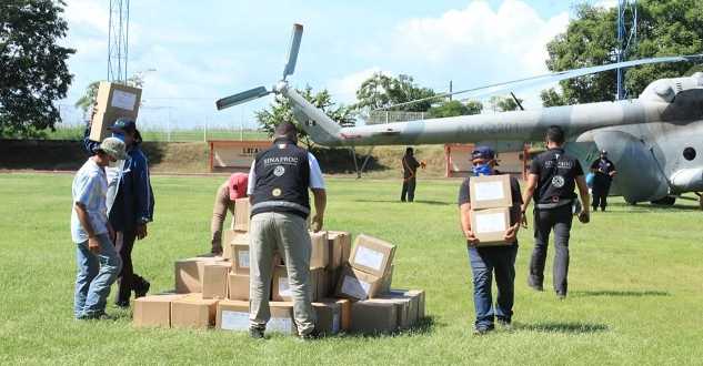 Este martes, como parte del puente aéreo de ayuda humanitaria que mantiene la Marina y la CNPC en conjunto con autoridades estatales y municipales, fueron entregadas las primeras 200 despensas, del Fondo Nacional para Desastres Naturales (Fonden), que serán destinadas a familias damnificadas que permanecen en albergues instalados por el ayuntamiento de Emiliano Zapata.