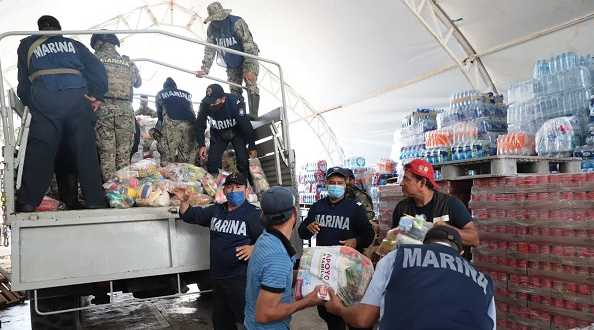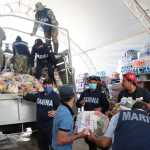 “Nos ha estado llegando ayuda de todas partes de la República. Ahorita vino un camión de la Marina y se va con un cargamento de 450 despensas que es lo que entró en ese contenedor, pero tenemos contemplado llevar dos mil despensas”, detalló.