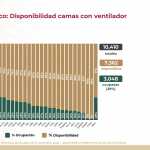 A nivel nacional, 63% de camas de hospitalización general están disponibles y 37% ocupadas. En camas con ventiladores, 71% están disponibles y 29% ocupadas.