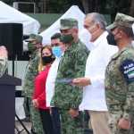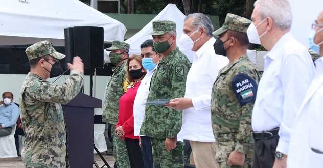 El representante militar señaló que los retos que enfrenta nuestra Nación son desafiantes ante la presencia del SARS-CoV-2, en el que los esfuerzos conjuntos de todas las instituciones –encabezadas por el Sector Salud–, han permitido continuar con la vida diaria de todas las personas, siempre respetando las medidas higiénicas y preventivas.