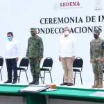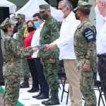 En instalaciones del 37 Batallón de Infantería, el mandatario entregó la condecoración “Miguel Hidalgo” –la más alta presea que se otorga al personal militar– a 19 profesionales de la salud por sus servicios prestados a la Patria y a Tabasco, en la atención de la emergencia sanitaria provocada por el virus COVID-19.