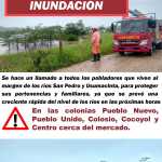 El coordinador general del Instituto de Protección Civil del Estado de Tabasco (IPCET), Jorge Mier y Terán Suárez, alertó a la población de la región de Los Ríos, por el incremento del río Usumacinta, que seguirá creciendo debido a las intensas lluvias que se presentan en Guatemala y que provocarán desbordamientos en distintas zonas del afluente más caudaloso de nuestro país.