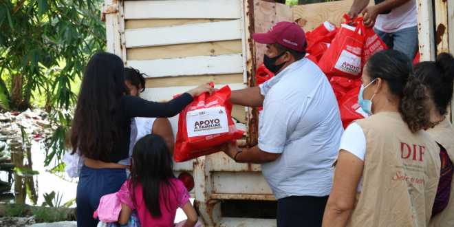 En apoyo a los afectados por las inundaciones, el Sistema DIF Tabasco, envió este domingo ayuda humanitaria a comunidades de Teapa, donde cientos de familias permanecen damnificadas a causa del desbordamiento del río de La Sierra.