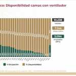 A nivel nacional, 63% de camas de hospitalización general están disponibles y 37% ocupadas. En camas con ventiladores, 70% están disponibles y 30% ocupadas.