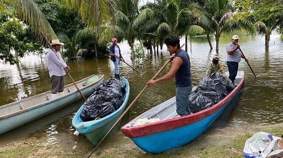 En Jonuta, uno de los municipios más golpeados de la región de Los Ríos por el desbordamiento del Usumacinta, se garantiza a las familias el acceso a los insumos de primera necesidad, y se les hace entrega directamente la ayuda, sin intermediarios.
