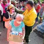 En la localidad de Río Viejo, del municipio de Centro, personal de Protección Civil nacional y estatal, de la Sedena y de la Comisión Nacional Forestal (Conafor), hizo entrega de insumos de primera necesidad y agua embotellada, como parte del compromiso del Gobierno de México de brindar auxilio a las familias afectadas por los fenómenos naturales.