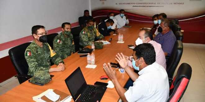 El alcalde Jesús Selván García encabezó esta mañana en el Cabildo una reunión de evaluación de las acciones para atender la emergencia ante la inundación que viven 21 localidades de Jalpa de Méndez, las cuales literalmente están bajo el agua.