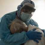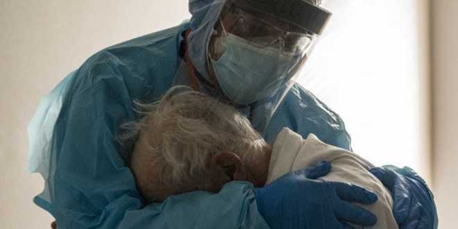 «Estaba llorando»: la foto de un médico estadunidense con guantes, tapabocas y visera abrazando a un paciente anciano se volvió viral en las redes sociales, símbolo de la desesperación de las víctimas del covid-19 y la compasión de los trabajadores de la salud.