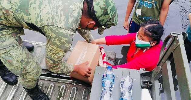 En la ranchería Río Tinto 2ª y 3ª, del municipio de Centro, personal del Centro Nacional de Prevención de Desastres (CENAPRED), la Conafor y la Sedena, entregaron insumos a las familias que más lo necesitan. Así también a través del Plan D-N-III- E, el Ejército sigue apoyando al Ayuntamiento de Nacajuca con la distribución de despensas a las familias afectadas por las fuertes lluvias.