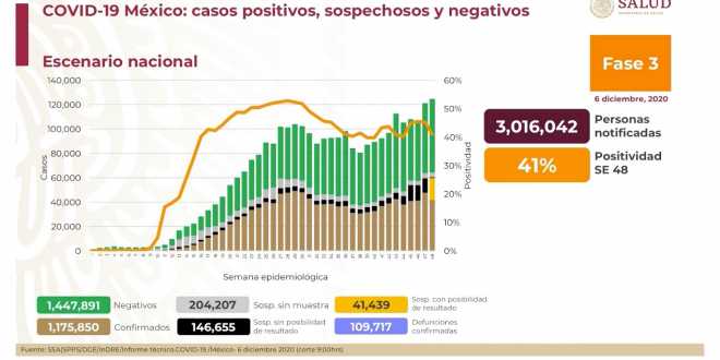 Al 06 de diciembre de 2020 hay 1,175,850 casos confirmados #COVID19. Se han registrado 1,447,891 negativos, 109,717 defunciones confirmadas y 866,186 personas recuperadas.