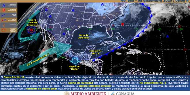 El Instituto de Protección Civil del Estado de Tabasco (IPCET), informó que el frente frío número 18 comenzará un proceso de disipación, sin embargo su masa de aire polar mantendrá el ambiente fresco y un potencial de lloviznas, con lluvias moderadas aisladas de 5.1 a 25 milímetros en el Sur del Estado.