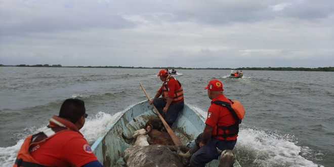 Decenas de reses fueron salvadas de ahogarse en el ejido Chinal por personal de Frontera Sur, de Protección Civil y del Gobierno de Jonuta y de voluntarios, quienes embarcaron el ganado en chalanas para trasladarlo a un lugar seguro.