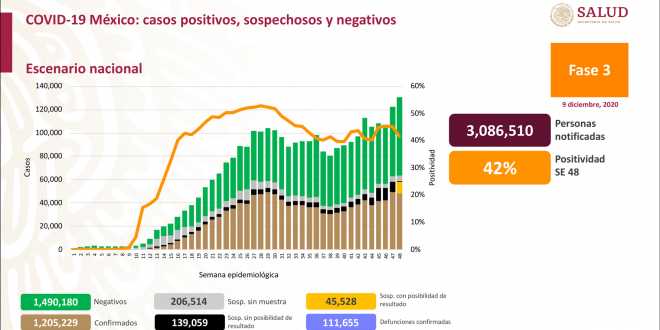 Al 09 de diciembre de 2020 hay 1,205,229 casos confirmados de #COVID19. Se han registrado 1,490,180 negativos, 111,655 defunciones confirmadas y 889,168 personas recuperadas.