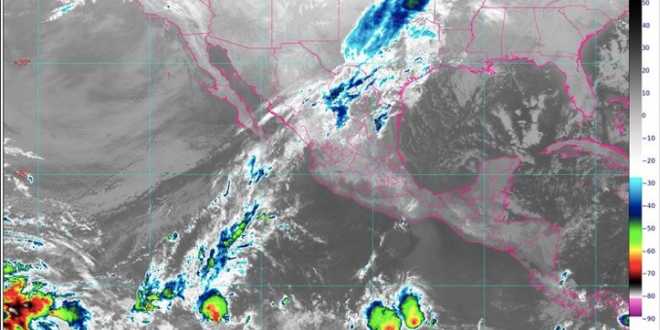 Se prevén lluvias con intervalos de chubascos (de 5.1 a 25 milímetros [mm]) en localidades de Guerrero, Michoacán y Oaxaca, y lluvias aisladas (de 0.1 a 5 mm) en Chiapas, Ciudad de México, Durango, Estado de México, Jalisco, Morelos, Nayarit y Sinaloa. Las precipitaciones podrían ser con descargas eléctricas y fuertes rachas de viento durante las tormentas.