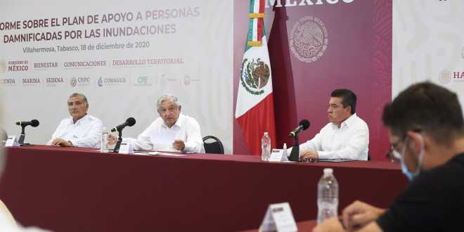 Todas las personas afectadas por las inundaciones en Tabasco y Chiapas recibirán apoyo de la federación; igualmente, inician acciones de dragado y desazolve, así como mejoramiento urbano y control de presas en ambas entidades, afirmó el presidente Andrés Manuel López Obrador al encabezar el informe sobre el plan de apoyo a personas damnificadas desde la capital tabasqueña.